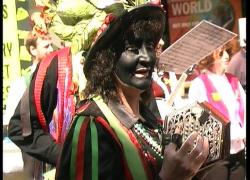Some of the festival-goers talk about their travelling homes and tents. Several of the sights around the festival are shown, and the bearded man talks about the festival as well as how he makes jewellery from copper which he has picked up from here and there. The accordion player states that she, "…has been called an environmental fascist, but that's by people with no sense of theatre."