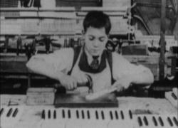 Some of the slabs go to the rolling mill. Here the strips pass through the strip guide onto one of the apron conveyers where they pass through vibrators at high speed to make them into a snake pattern. From here they are made into coils and inspected. There is a large maintenance workshop which also houses spares, as well as a training workshop where apprentices are being trained. Other trainees are shown how the machinery works, before the film ends once again at a furnace.