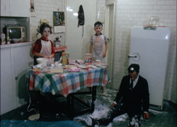 A man in a bowler hat, and carrying a briefcase and brolly, arrives at the modern Passenger Terminal, where he has a coffee in the caf? there. Back to the goods, which have been clamped into position on the ship and the doors are locked. The Spero is then shown moving off. On board the brolly man inspects his accommodation. The ship makes its way across to Sweden, steered by a young officer. Passengers lay out on the sun deck and play games. The other facilities offered by the ship are also shown, such as the Calypso Lounge. Passengers dine on board.