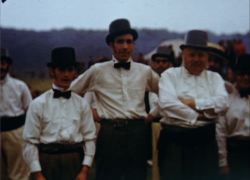 The Queen and her consorts continue to process down the street, past the shop entitled 'S. Wood & Sons'. Horses cart floats with slogans such as "The Firing Line", "Understanding" and "Purity" written on them, and a marching brass band follow behind. A fire engine also joins the parade with the firemen holding onto the ladder as it makes its way along the high street. There are more children in fancy dress, one holding a placard declaring 'Class 13, Miscellaneous Subjects', and a Sunday School float before the procession comes to an end and the crowds are seen milling about in the street as the film comes to a close.